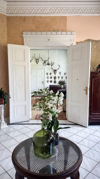 Schloss Kaeselow ist ein historisches Anwesen im Stil der Tudorgotik (1860) im Herzen Mecklenburg‑Vorpommerns, Nähe Schwerin. Claudia und Vincent lassen das denkmalgeschütze Haus Stück für Stück wieder lebendig werden und führen seit 2024 die Arbeiten liebevoll Schritt für Schritt fort. Das Schloss ist teilrenoviert, während einige Bereiche noch darauf warten, wieder in altem Glanz erstrahlen zu dürfen. Zwischen ehrwürdigen Mauern, dem Park mit altem Baumbestand und kreativen Zukunftsideen entsteht ein Ort zum Wohnen, Verweilen und Erleben.